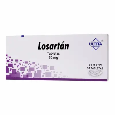 Losartan tabletas 50mg. Caja con 30 tabletas.